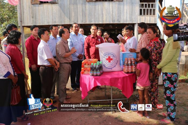 ឯកឧត្តម ខូយ រីដា ប្រធានគណៈកម្មាធិការកាកបាទក្រហមកម្ពុជាខេត្តពោធិ៍សាត់ និងជា តំណាង ឯកឧត្តម ម៉ៅ ធនិន ប្រធានកិត្តិយស សាខាកាកបាទក្រហមកម្ពុជាខេត្តពោធិ៍សាត់ បានដឹកនាំមន្ត្រីក្រុមការងារ នាំយកអំណោយមនុស្សធម៌ ជូនគ្រួសារសពស្ត្រីរងគ្រោះឈ្មោះ នៅ ស្រីនាង ភេទស្រី អាយុ២៥ឆ្នាំ មានផ្ទៃពោះជិតគ្រប់ខែ ដែលស្លាប់ដោយសារជំងឺឈាមស ស៊ីឈាមក្រហម ដែលមានអាក្ការៈថប់ៗដង្ហើម ហើយណែនដើមទ្រូង ក្អក និង ក្អួត ដល់លំនៅដ្ឋាន ក្នុងភូមិព្រែក៣ ឃុំសំរោង ស្រុកភ្នំក្រវាញ នារសៀលថ្ងៃទី ១៩ ខែ មីនា ឆ្នាំ២០១៦ និង ដោយមានការអញ្ជើញចូលរួមពីអាជ្ញាធរ ភូមិ ឃុំ ស្រុក និង ប្រជាពលរដ្ឋជាច្រើន ។